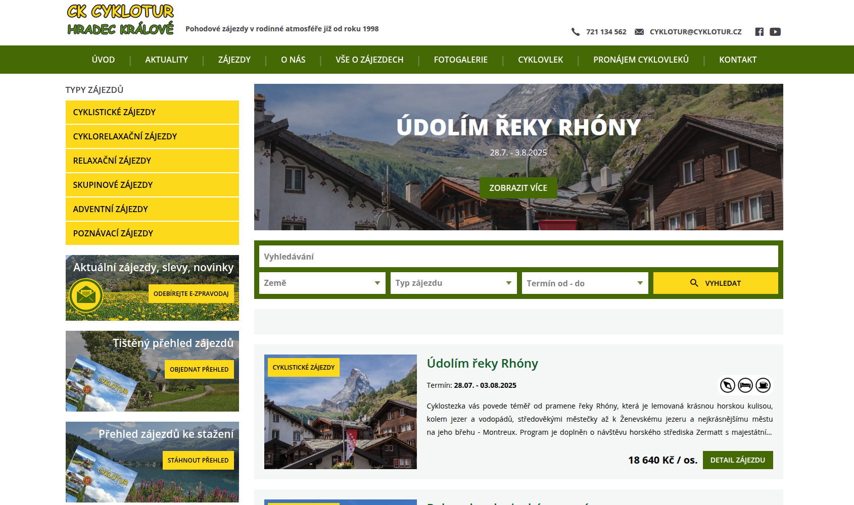 Web nabízí pohodové cykloturistické zájezdy po Evropě a ČR pro všechny věkové kategorie, kombinující cyklistiku s relaxací a poznáváním. Interní informační systém pro správu zájezdů.