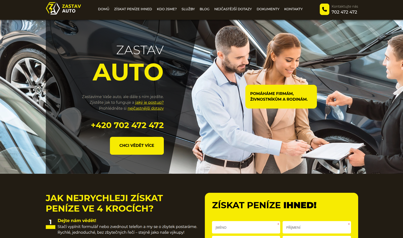 Web nabízí rychlou a diskrétní zástavu automobilu s možností jeho dalšího užívání, přičemž peníze můžete získat do 15 minut.